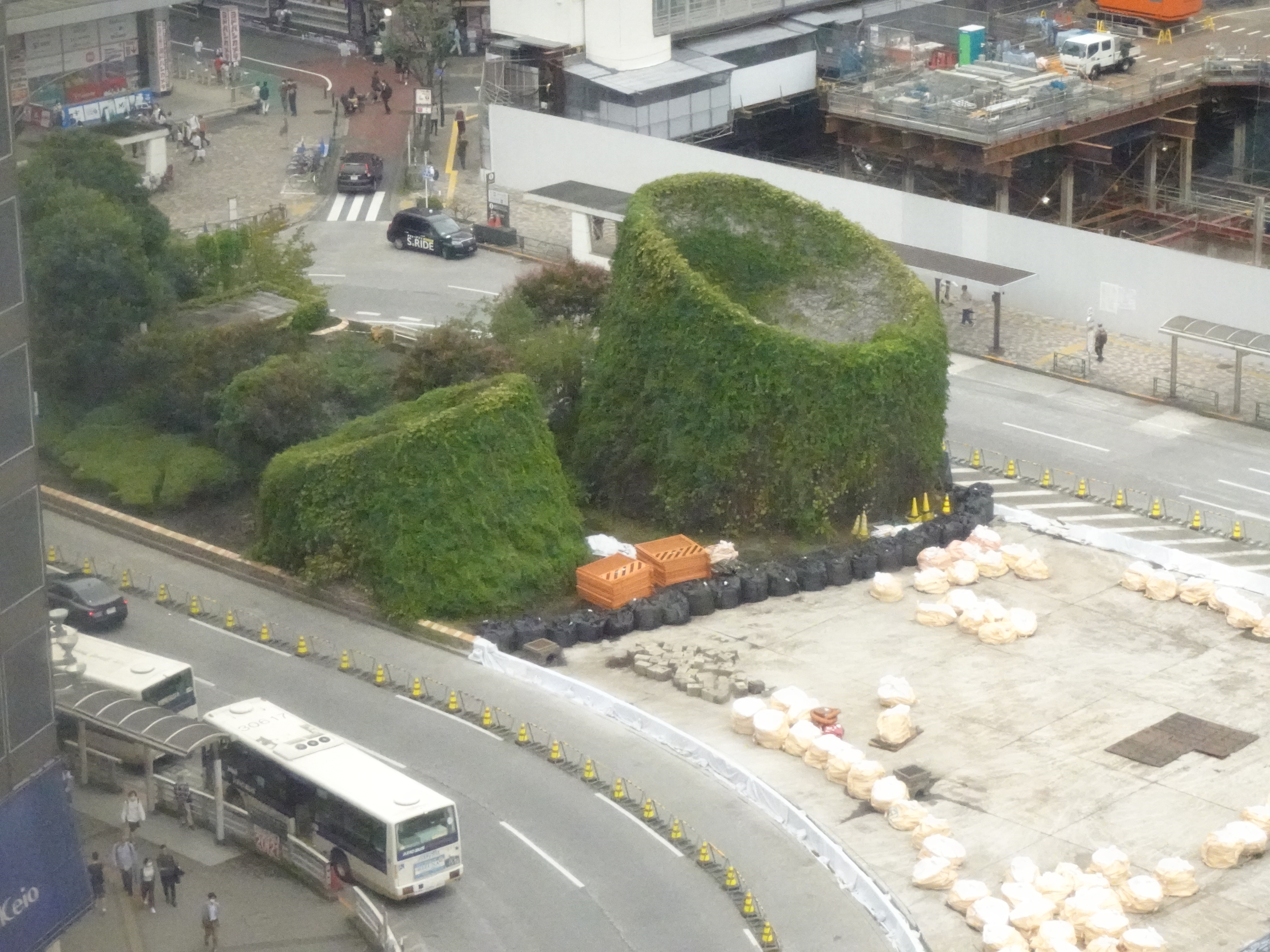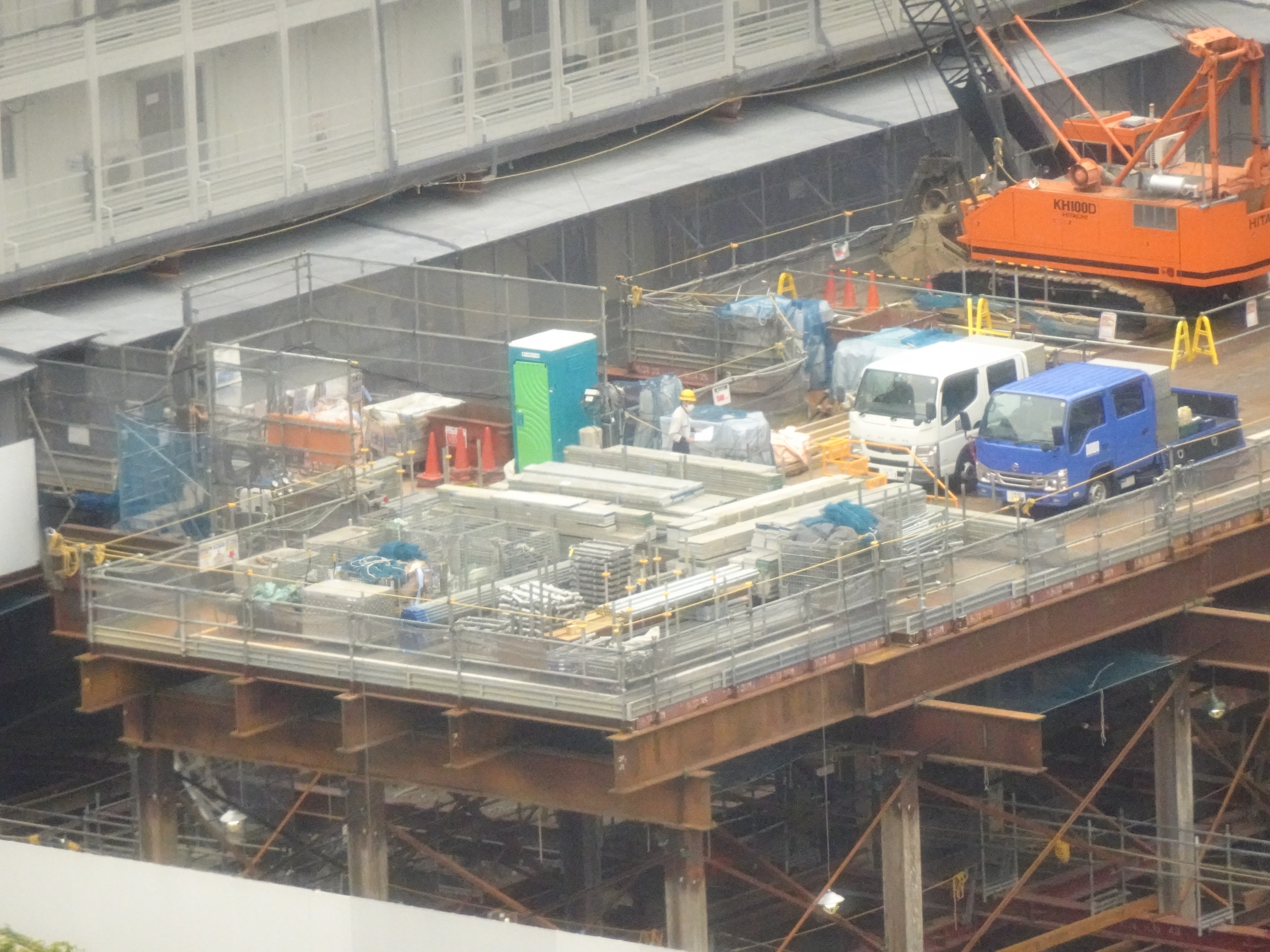 2018年7月21日に閉鎖した後、解体された新宿スバルビル跡地の再開発工事の様子。